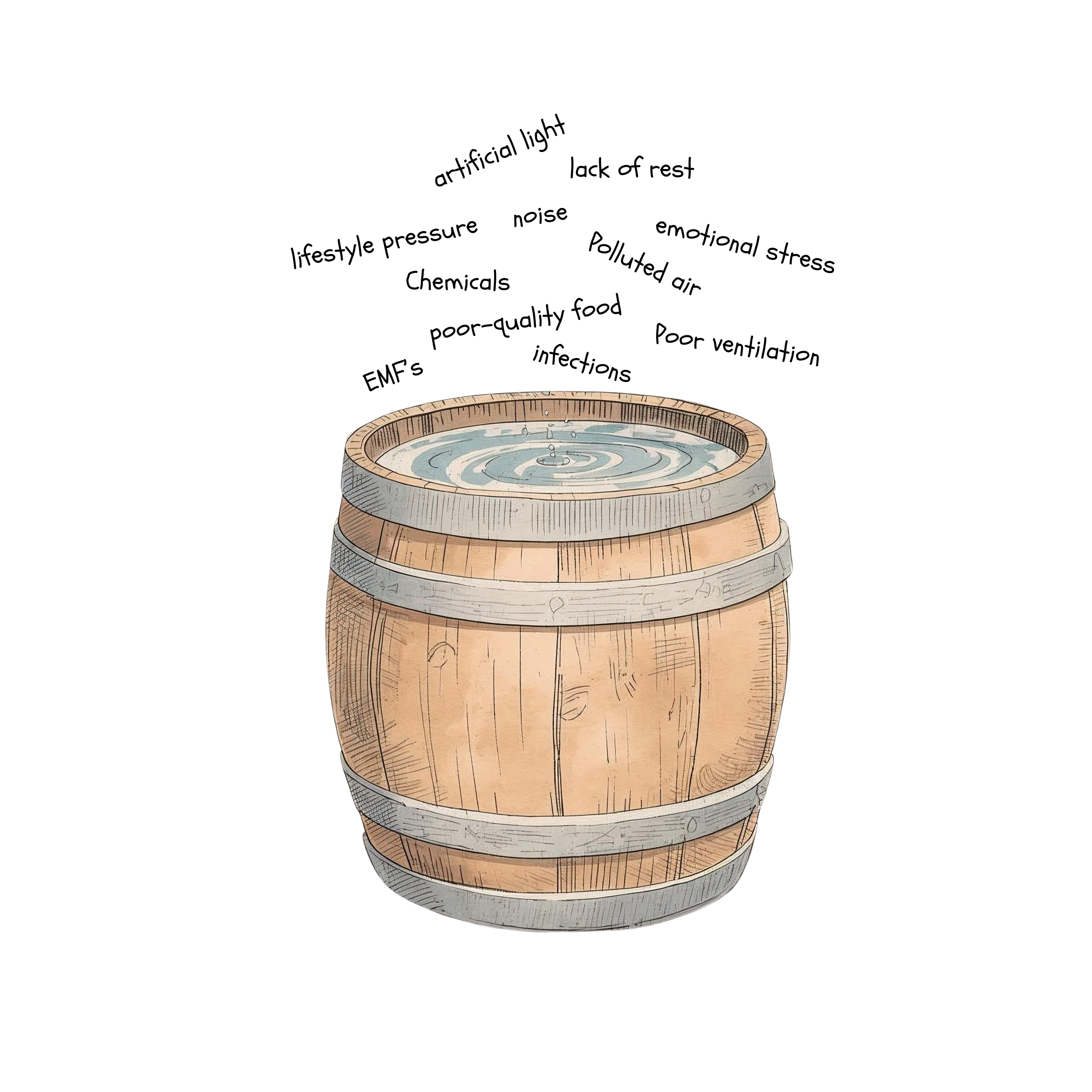 Outdoor environment, lifestyle, work pressure, movement, rest, and especially the quality of food all contribute to how quickly the barrel fills.